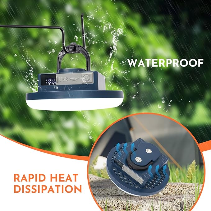 - Outdoor Camping Essentials: The tent lights are IPX6 waterproof, allowing you to use them with peace of mind even in rainy, snowy, or hurricane. In addition, outdoor lanterns achieve rapid heat dissipation, which ensures safety during use and is a reliable indoor and outdoor lighting fixture.