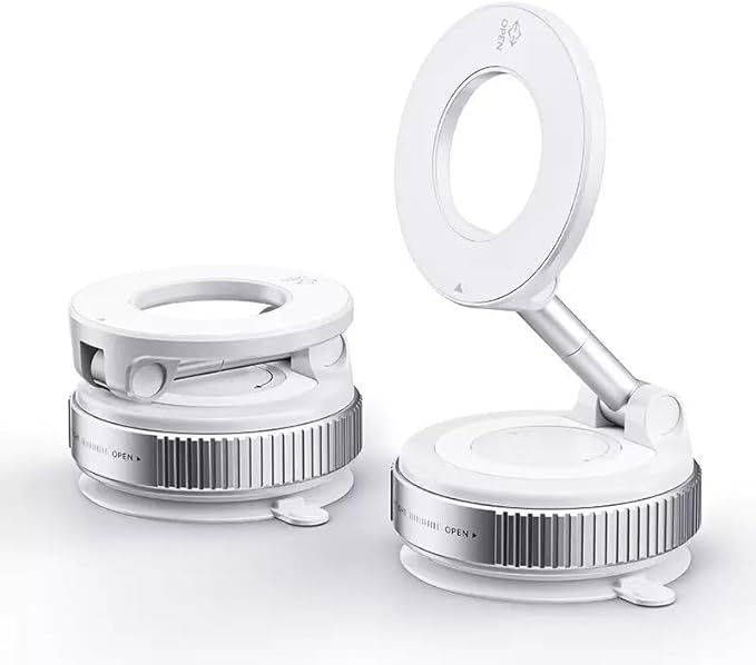 - Easy to install:Installs in seconds! Simply press the vacuum base on any smooth surface (dashboard/windshield), twist the lock knob to activate ultra-strong suction. The powerful magnet holds your phone firmly—even on bumpy roads.(gift 1. The magnet ring-can be pasted on the back case of your phone, gift 2. sleek base to facilitate your sticking)