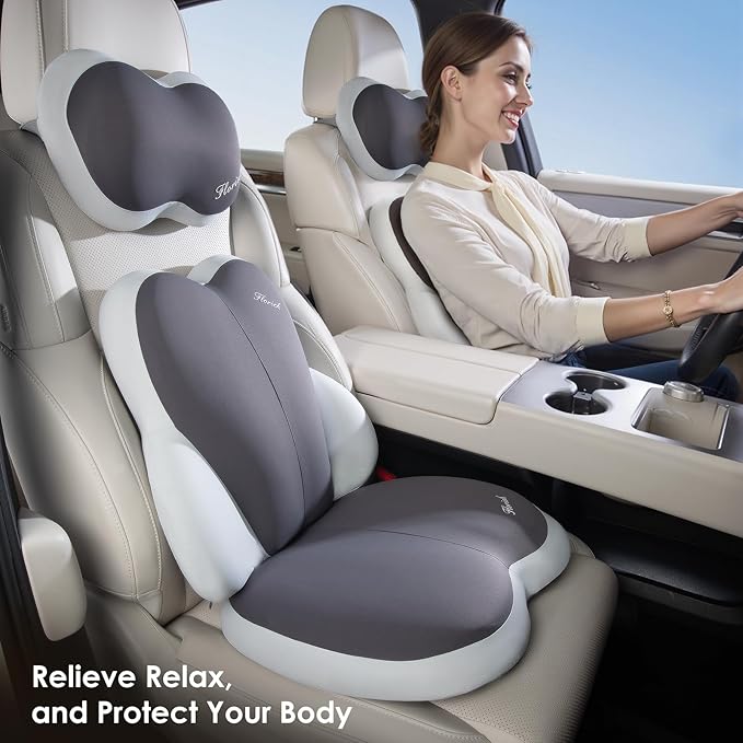 - Pain Pressure Relief, Enhanced Comfort: Enjoy all-day comfort with our office chair lumbar support seat cushion and headrest neck pillow kit. FLORICH neck and lumbar support pillow seat cushion is ergonomically designed to reduce discomfort in the lower back, tailbone, sciatic nerve, and stiff neck. It makes you feel comfortable in long distance driving or long sitting.