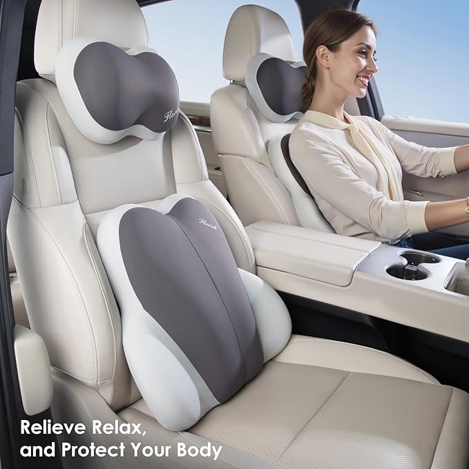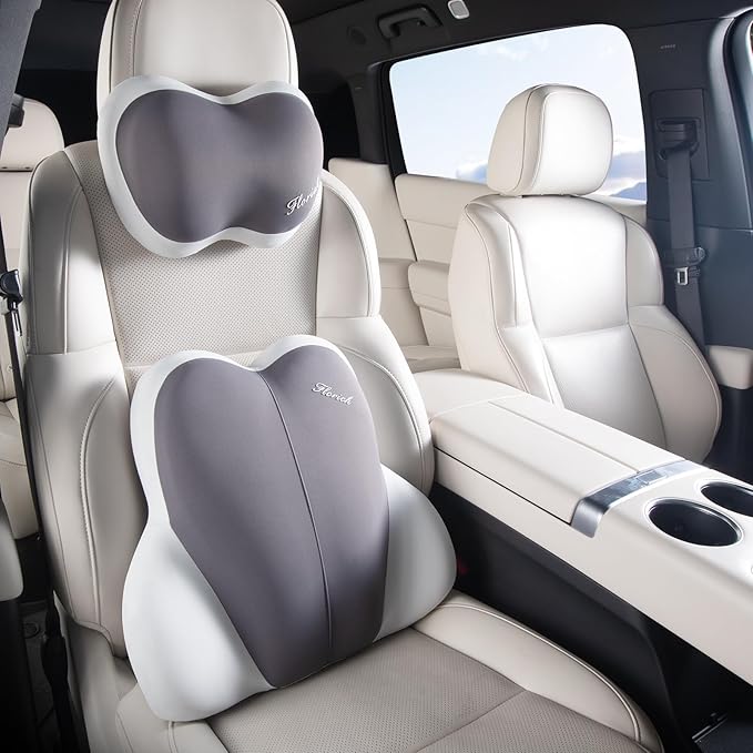 - Pain Pressure Relief, Enhanced Comfort: FLORICH upgraded neck and lumbar support pillow seat cushion is ergonomically designed to reduce discomfort in the lower back, tailbone, sciatic nerve, and stiff neck. It makes you feel comfortable in long distance driving or long sitting, enjoy all-day comfort.