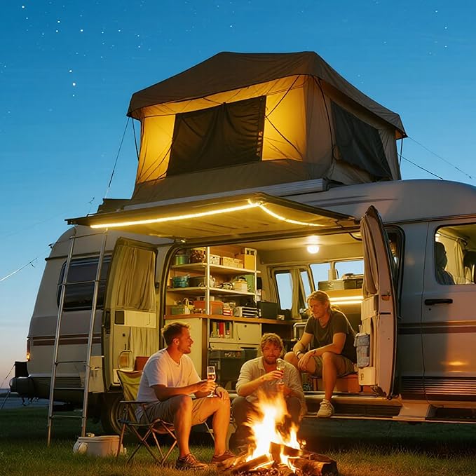 12V LED Light Bar Kit, 2 Bars White & 2 Bars Amber Adjustable Brightness RV Camping Lights - Waterproof IP67, Magnetic & Velcro Mount, Portable Lighting for Tent, Car, Trailer, Boat, Truck, Off-Road