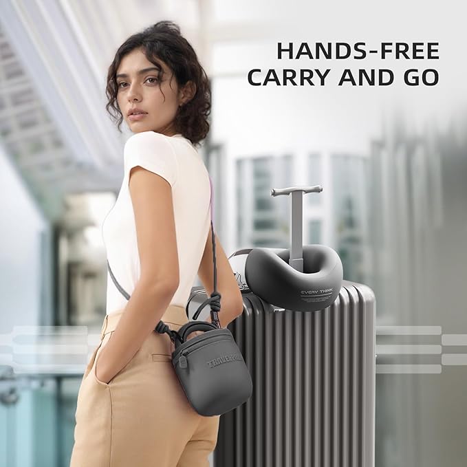 - 【Ultra-Portable Travel Essential】This compact travel pillow folds into its included silicone pouch. Attach the detachable strap as a crossbody bag——airplane travel essentials. Fits in backpacks, under-seat storage, and carry-ons- perfect for international flights and road trips ——road trip essentials.