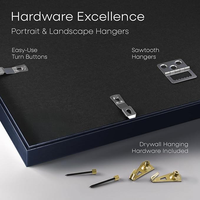 Homeforia 8.5x11 Navy Blue Frame, High End Metal 8.5 x 11 Picture Frames with Mat 6 by 8 inch Photo, 11x8.5 Poster Frame Matted to 6x8 Print, Wall or Tabletop Frame, Tempered Glass, Wall Kit, Set of 1