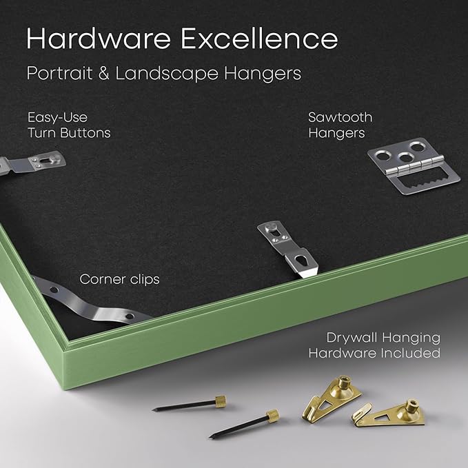 - SAGE GREEN, PERFECTLY BALANCED. Neither flashy nor flat, this color brings a designer’s eye to everyday framing—timeless and calm.
