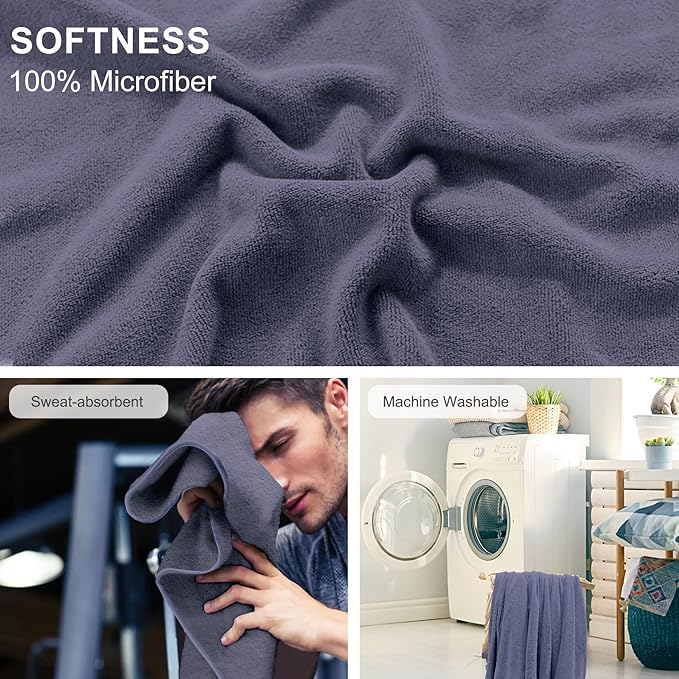 Car Seat Towel Cover, 2pcs Universal Front Seat Protector for Cars, SUVs and Trucks, Sweat Towel Car Seat Cover for Gym, Yoga, Swimming, Pets and Family Travel, Purple Gray