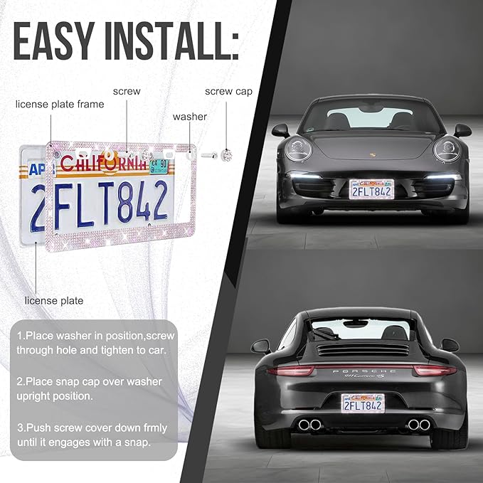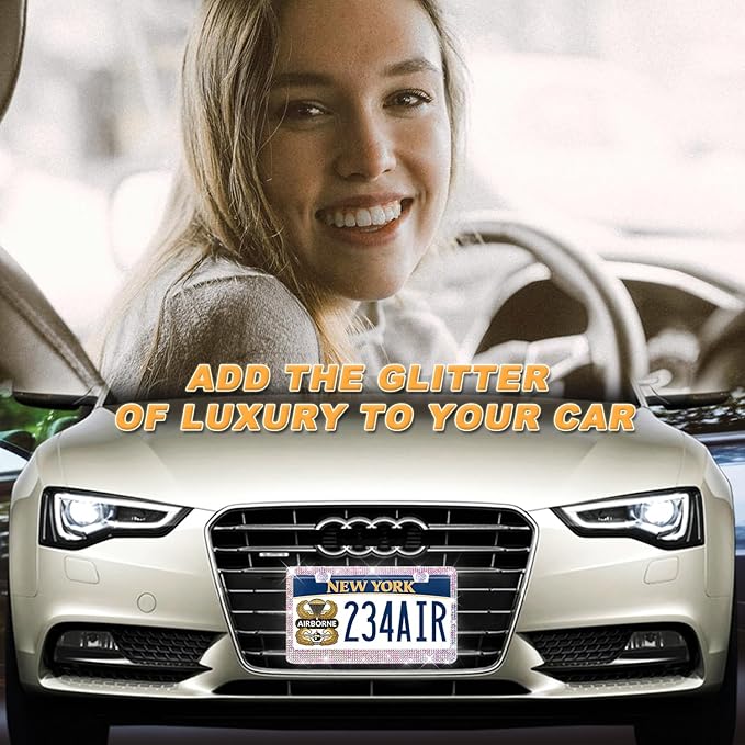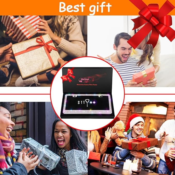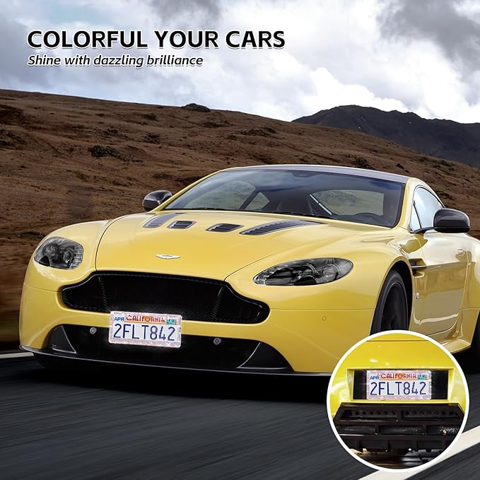 Bling License Plate Frame - Stainless Steel Colorful Rhinestones Car Accessories with 1200 Crystals, Universal Fit Decorative Diamond Plate Covers for Women Men All Cars