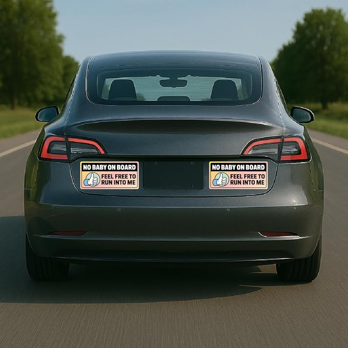 No Baby on Board, Feel Free to Run Into Me Car Magnet β Funny Bumper Magnets & Baby on Board Magnet for Car Parody β Hilarious Prank Stickers, Adult Gag Gift, Weatherproof Magnetic Bumper Joke