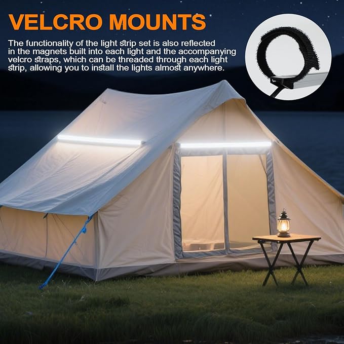 - 【EASY TO INSTALL】Each trailer lights has a built-in strong magnet that instantly attaches to metal frames. It also comes with eight thick Velcro straps that can be threaded through the light strip, allowing for secure installation on tents, awnings, and car roofs without the need for glue. Removal leaves no residue.