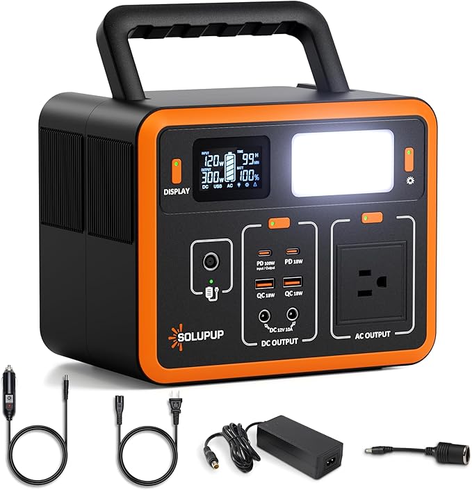 - 【Power Up Everything Anywhere】: This ultra-portable power station packs a massive 288Wh LiFePO4 battery (90,000mAh) delivering 300W pure sine wave AC output (600W peak). Power 7 devices simultaneously - phones, laptops, drones, even mini-fridges! Ideal for camping, emergency home backup, road trips, apartment use, or indoor blackouts