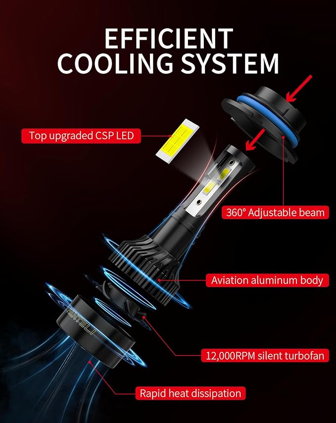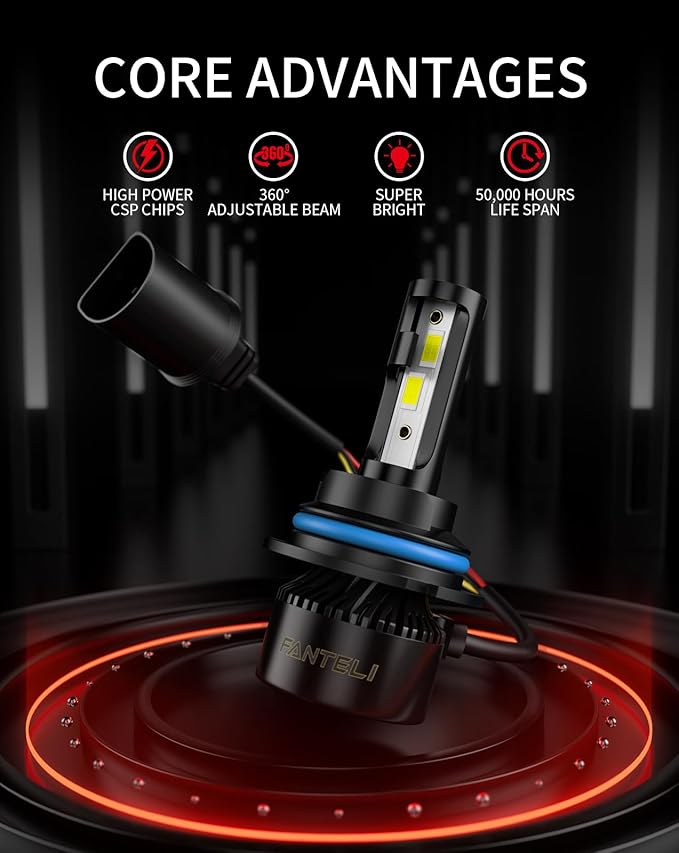 9004 LED Bulbs, 34000LM 800% Brighter, Backup HB1 Bulb Interior Light, Plug & Play 6000K Cool White, IP68 Waterproof Replacement, Pack of 2, License Plate Lights