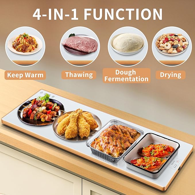 - Multi-functional Uses - Besides being used to keep food warm for party, the Wanish electric food warmer is also a multi-functional home helper. It has a range of functions, defrosting, promoting dough fermentation, drying, heating face masks, warming milk/wine/tea and more. The food warming mats for countertop can meet your various needs all year round and enhance your lifestyle on a daily basis, also a ideal choice for catering food warmers.