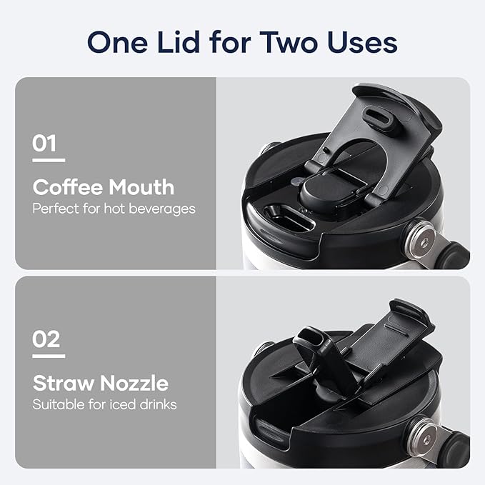 - 2-in-1 Lid: BUZIO tumbler with lid and straw allows you to suck or sip as you wish. There is a protective cover on the straw nozzle to protect drinks from dust. The small mouth is suitable for drinking hot coffee.