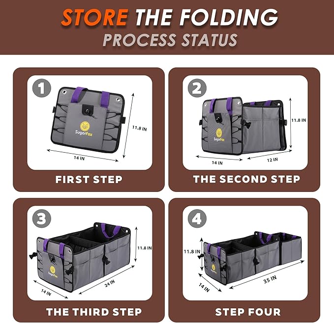 - 【Perfect for Clutter-Free Travel】:Keep Your Trunk Neat – Ideal for organizing groceries, toys, camping gear, or work tools. Stylish purple/gold accents add a premium touch while tackling mess.