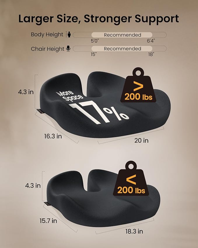 - Solution for Target People: Our upgraded extra-large seat cushion is tailored to meet the needs of individuals, providing a spacious and supportive seating solution designed to accommodate for weights exceeding 200 lbs with superior comfort and durability