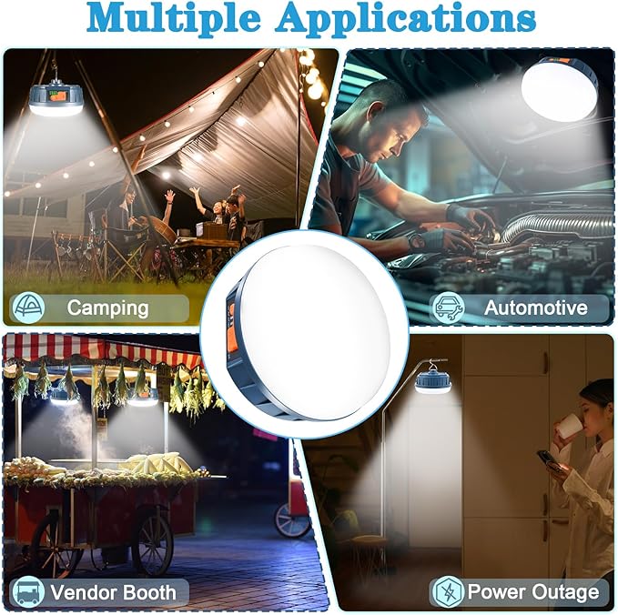 - HIGH BATTERY CAPACITY: Camping light with 10000mAh battery provides longer usage time for long outdoor trips. With hours of light on a single charge, this rechargeable tent light is perfect for camping, emergencies or extended power outages.