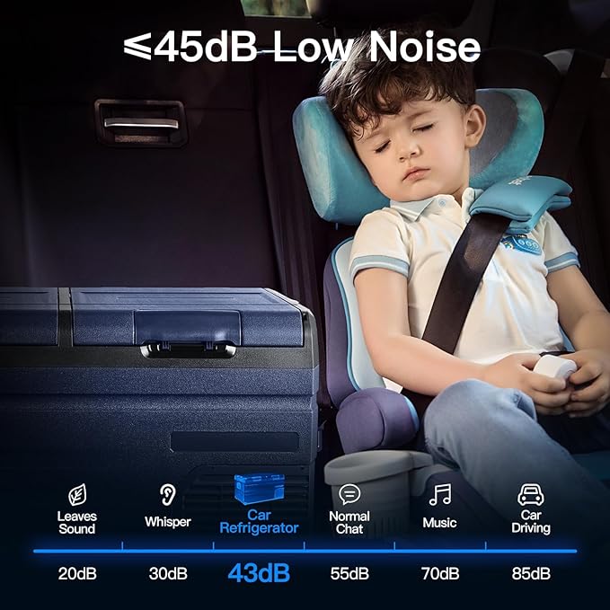 - 【ANTI-SHAKING】: BODEGACOOLER 12v fridge provides a silent and comfortable environment for you.Because of its overall external smooth lines and equipped with a multi-functional non-slip base, the lateral displacement is greatly reduced. When your car is climbing at an inclination angle of 30 degrees, the car portable freezer can still run stably.Our portable car refrigerator allows you to enjoy cold drinks in stable and quiet during the trip