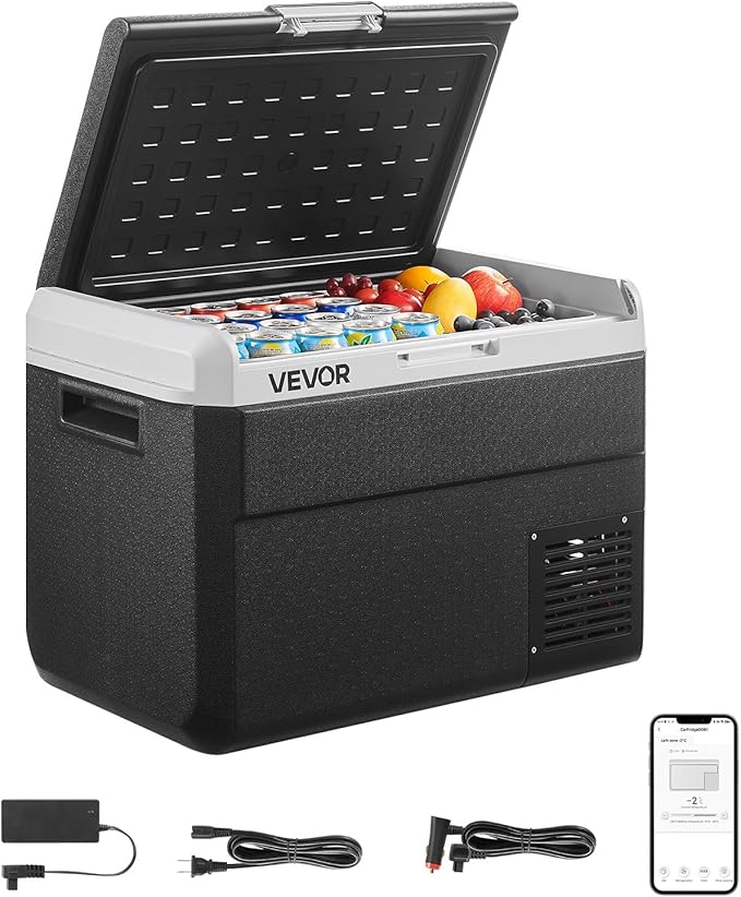 VEVOR 12 Volt Car Refrigerator, 52.8QT/50L Car Fridge, Portable Electric Cooler with -4℉~68℉ Adjustable Temperature, 12/24V DC and 100-240V AC Compressor Freezer for Outdoor, Camping, Travel, RV