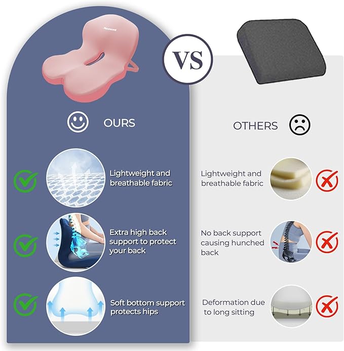 - 👍【Smart Memory Foam Core】Made with high-density slow-rebound memory foam, it molds to your body shape with heat, delivering customized support for your lower back and hips. Ideal not only for car seats but also for office chairs, wheelchairs, gaming chairs, and more.
