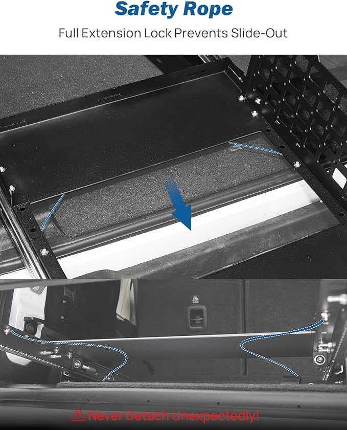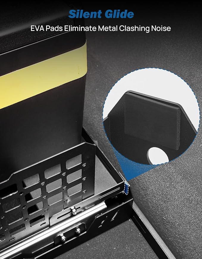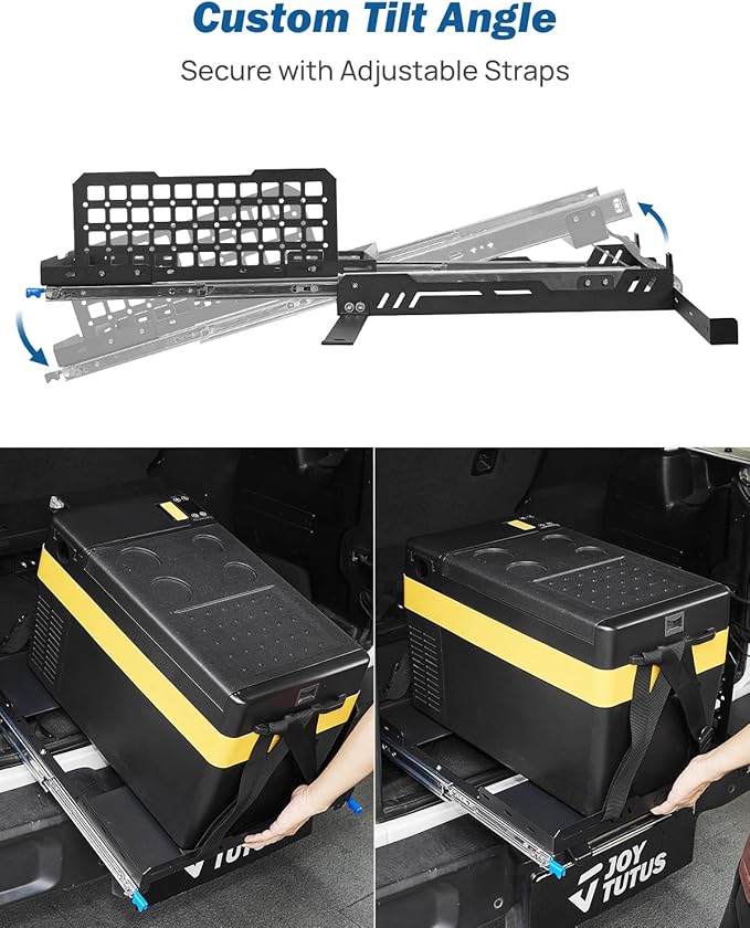 - GOOD NOISE REDUCTION EFFECT: With EVA spacers and rubber rings to eliminate noise. Fridge slide out tray offers exceptional load-bearing capacity, with no noise even when the vehicle is in motion, making it highly suitable for camping and road trips