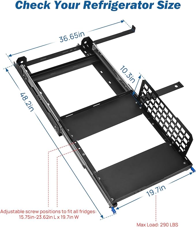 - EXCELLENT STABILITY: JOYTUTUS Fridge Slider has double limit rails for better stability. Reduces safety risks (such as falling from single-rail shaking) and avoids track damage from insufficient load-bearing, extending service life and more durable