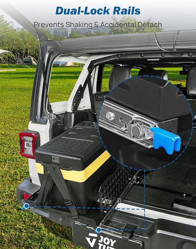 - WIDE APPLICABILITY: Fridge Slide fits most portable fridges (Max 23.62in x 19.69in, Min 15.75in x 19.69in) and holds up to 290 lbs. The given installing bracket matches the original hole of 18-25 Wrangler JL, other vehicles require drilling with wooden boards for fitting