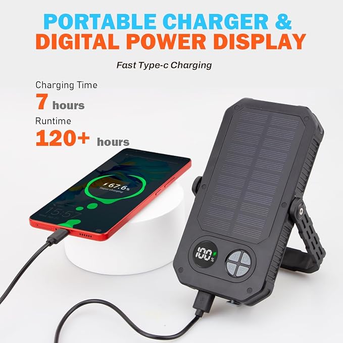 - 360° Hook & Strong Magnetic Base - The 360° hook design allows the camping lantern to be hang on objects such as tents. Our rechargeable camping lights comes with Built-in strong magnet, which make it can be firm stay on car, track or any other metal surface for use as working lights.