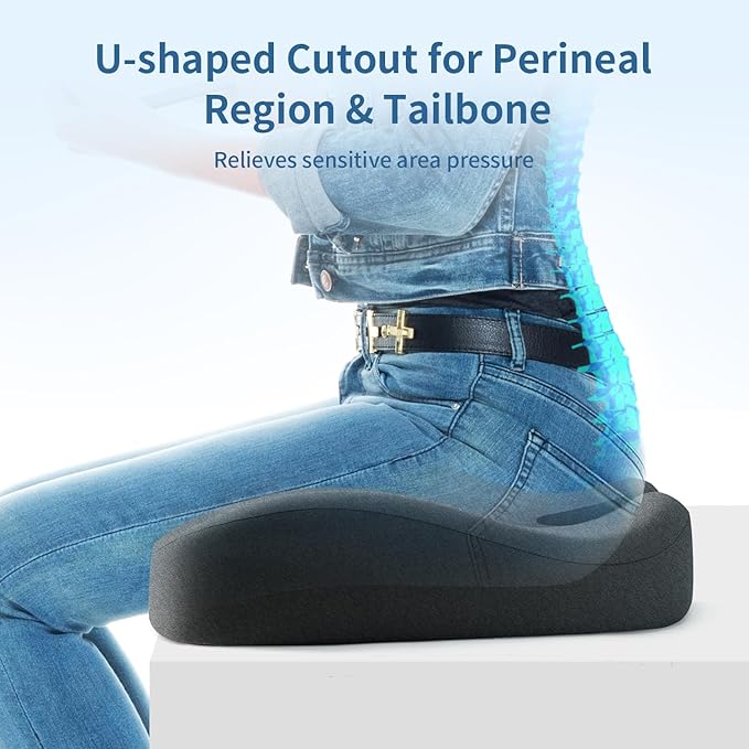 - ✔Ergonomically-Contoured by Our Specialists: Our design cradles your thighs & hips to effectively relieve pressure on your tailbone and sensitive areas, promoting a healthy, upright sitting posture