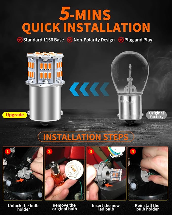 - 【300%+ Brightness】Each 1156/ 7506 bulb uses premium LED chips, providing 300% more brightness compared to halogen lamps, see more clearly and safely when driving. Built-in intelligent IC driver ensures constant current, long lifespan and low power consumption.