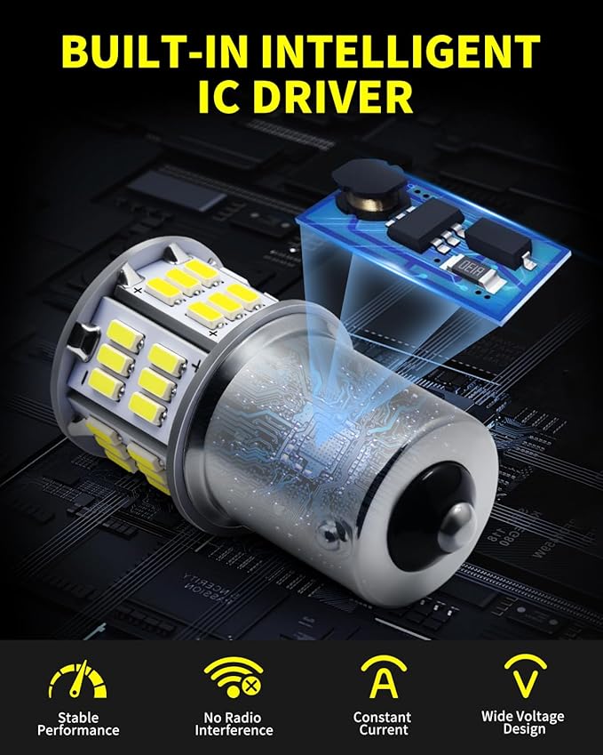 - 【300%+ Brightness】Each 1156/ 7506 bulb uses premium LED chips, providing 300% more brightness compared to halogen lamps, giving you wider and clearer night vision. Built-in intelligent IC driver ensures constant current, long lifespan and low power consumption.