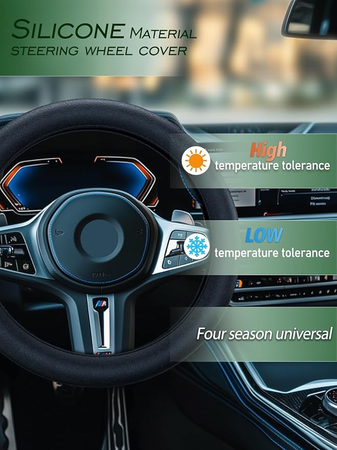 - - Stylish and Comfortable: High Quality Anti-Slip Silicone material.These steering wheel covers are both stylish and comfortable, with a soft and durable material that feels great in your hands.