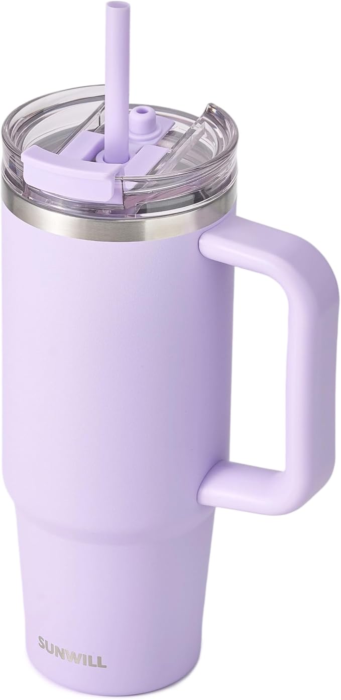 SUNWILL Coffee Tumbler with Handle, 30 oz Travel Mug with Lid and Straw Insulated, Stainless Steel Cup Leak Proof for Travel & Outdoor, Cupholder Friendly, Powder Coated Orchid
