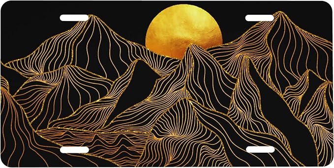 Front License Plate Mountain Sun Vanity Plates Aluminum Metal Decorative Car Tag Novelty License Plate Cover for Men Women 6 * 12 in (4 Holes)