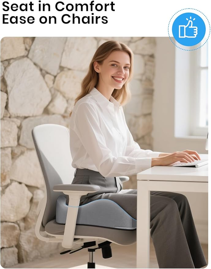 Benazcap Seat Cushion - Memory Foam Car Seat Pad - Sciatica & Lower Back Pain Relief - Car Seat Cushions for Driving - Road Trip Essentials for Drivers, Grey