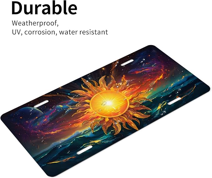 Front License Plate Sun Mystic Vanity Plates Aluminum Metal Decorative Car Tag Wave Novelty License Plate Cover for Men Women 6 * 12 in (4 Holes)