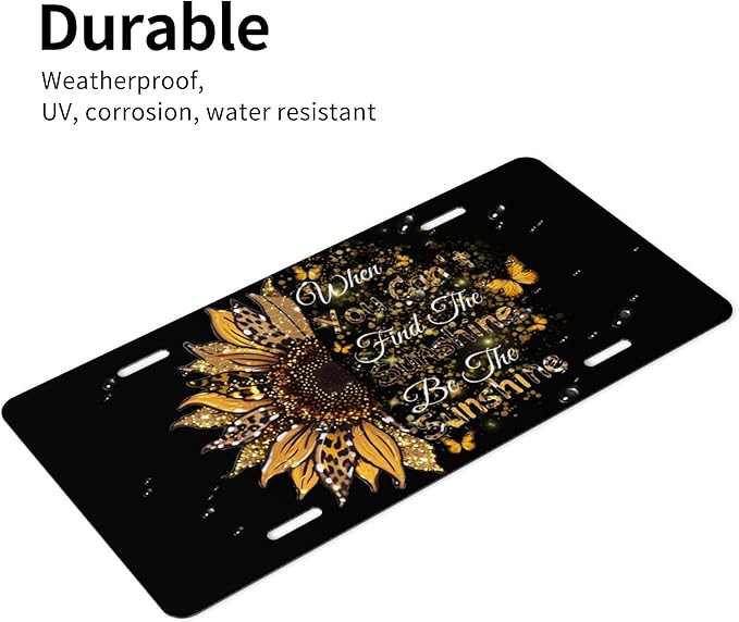 Front License Plate Be The Sunshine Vanity Plates Aluminum Metal Decorative Car Tag When You Can't Find The Sunshine Novelty License Plate Cover for Men Women 6 * 12 in (4 Holes)