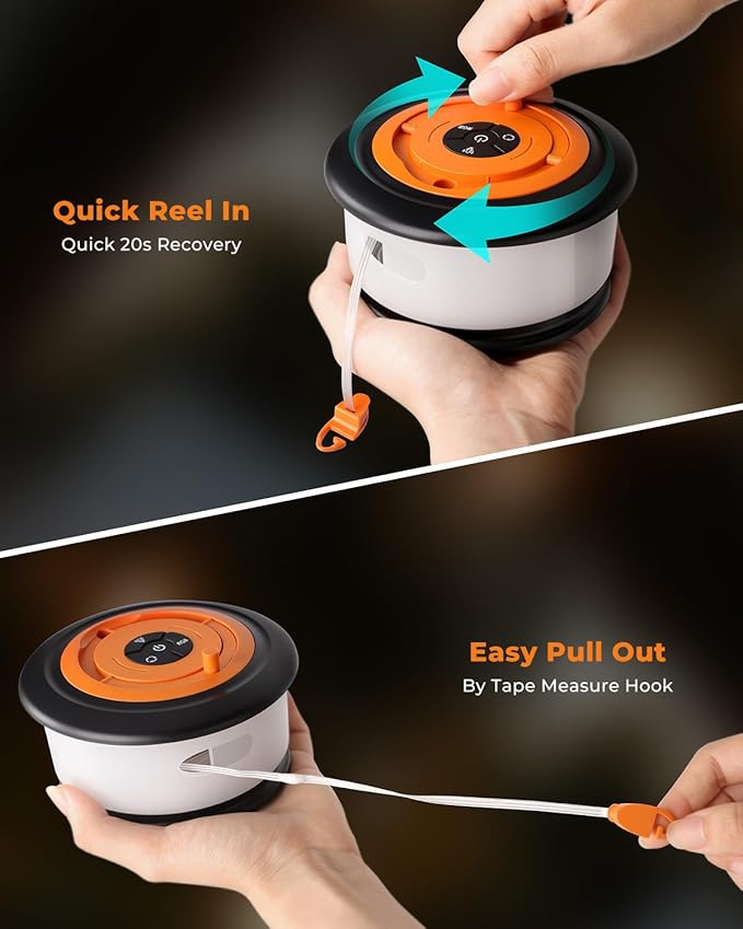 - Fast Retraction Design: Bylitodt retractable camping string lights can be wound up in seconds with a fast twist of the handle. A soft tug lets you unfurl its 32.8ft string without hassle. And with its anti-tangle design, messy wires will never put a damper on your outdoor adventure