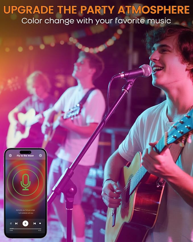 - 19 Colorful Lighting Modes: 4 music-synced modes dance to beats, amping campfire fun; 8 dynamic modes offer vivid effects like color fades and jumps, creating vibe around your tent; 7 static RGB modes emit soft hues, wrapping your garden in a cozy atmosphere