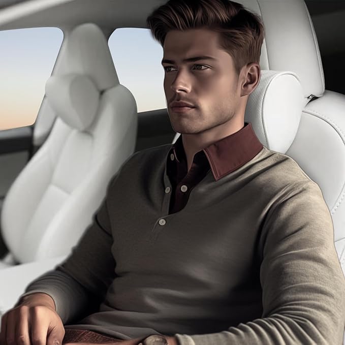 - 【Ergonomic Design】- This Tesla neck pillow with 3D concave curved surface design fits perfectly with the neck curve, filling the gap between your seat headrest and backrest, which can relieve neck stiffness, pain, pressure and fatigue during a long-term driving.