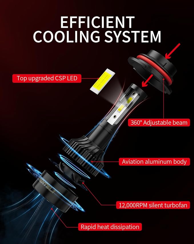 9007 LED Bulbs, 34000LM 800% Brighter, Backup HB5 Bulb, Plug & Play 6000K Cool White Interior Light, IP68 Waterproof Replacement, Pack of 2, License Plate Lights