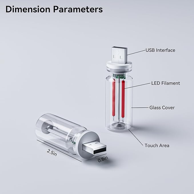 - 【Retro Glass Bottle Design with Warm LED Glow】Each USB LED night lamp is housed in a transparent glass bottle for a vintage touch. Emits a soft, non-intrusive glow that works as both mood lighting and a practical light source—ideal for relaxing in the car or adding character to your interior space