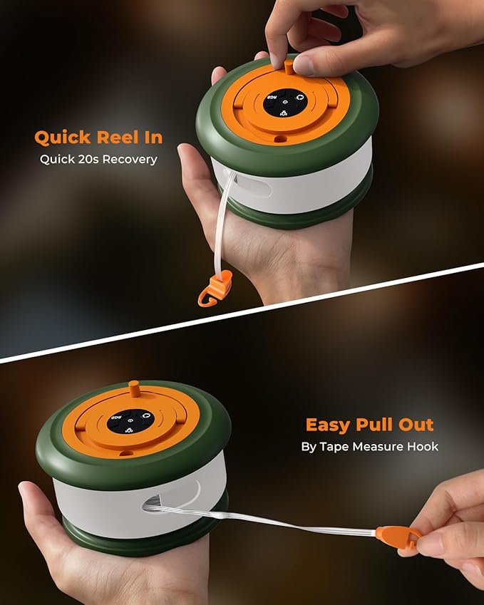 - Fast Retraction Design: Bylitodt retractable camping string lights can be wound up in seconds with a fast twist of the handle. A soft tug lets you unfurl its 10m string without hassle. And with its anti-tangle design, messy wires will never put a damper on your outdoor adventure