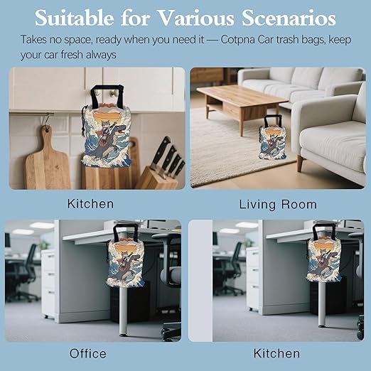 - Multi-Purpose: These stylish car trash bags are perfect for cars, trucks, SUVs, or RVs. They can also be hung anywhere—in strollers, kitchens, bedrooms, storage rooms, and more—and are more than just car accessories
