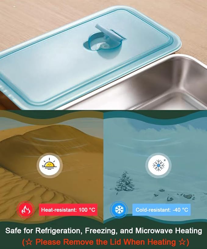 - Reusable and Easy to Clean: Our stainless steel food container is not easy to stick to food, easy to clean, and supports dishwasher cleaning, enjoying the convenience of reusable snack containers with lids. Plus, they are stackable for easy storage.