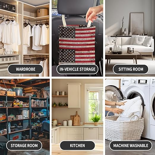 Cute Car Trash Can, Hanging Canvas Car Back Seat Organizer and Storage Bag, Funny Car Trash Bag for Travelling, Outdoor Cute American Flag Print