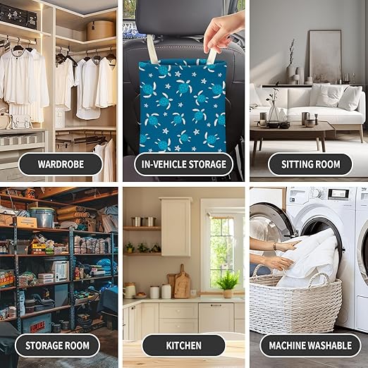 Cute Car Trash Can, Hanging Canvas Car Back Seat Organizer and Storage Bag, Funny Car Trash Bag For Travelling, Outdoor Cute Blue Sea Turtle